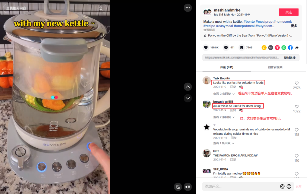 近年来,全球小型厨房家电市场迎来了爆发式增长。 据grandviewresearch数据显示,2024年全球小型厨房电器的市场规模估值为290.9亿美元。预计在2025年至2030年间,该市场的年均复合增长率将达到5.9%。 到2030年,全球小型厨房电器的市场规模有望突破409亿美元。这一快速增长背后,是消费者对便捷、健康生活方式的持续追求。 图源:grandviewresearch 虽然现在小型厨房电器已经成为现代家庭生活中必不可少的日常用品。但早在2008年,这类产品在消费市场还处于起步阶段,对当时的消费者来说仍属于相对小众的家电品类。 就在这个市场尚未成熟的早期阶段,就有一家中国企业洞察到了潜在的发展机遇,并以养生壶、蒸锅等主推产品作为突破口,精准切入小家电市场,经过持续的市场开拓,最终成长为这一细分领域的领先品牌。 据悉,该品牌在2024年营业收入就达到了5.87亿元,较上年同期增长了11.02%,这一数字占到公司总营收的77.84%。 目前,BUYDEEM(北鼎)的产品线已经成功打入北美、欧洲、日本及东南亚等主要海外市场,销售网络覆盖全球70余个国家和地区,成为了小家电行业具有重要影响力的品牌之一。 图源:Google 从代工到自主品牌的转型 PART ONE 据了解,BUYDEEM是深圳北鼎科技旗下的自主品牌。 追溯其发展历程,这家企业的前身可以回溯到2003年成立的晶辉科技(深圳)有限公司。作为当时全球领先的厨房小家电生产制造商,晶辉科技长期为惠而浦、摩飞、铂富等国际知名品牌提供OEM代工服务,年产能稳定在400万台左右,全球的市场覆盖率能达到60%。 2008年,国际金融危机的爆发成为企业转型的重要契机。面对市场环境的剧变,创始人调整了企业发展的战略方向,从单纯的代工生产转向了自主品牌建设,正式推出了北鼎品牌。 转型初期,企业锁定了小家电领域,陆续推出养生壶、饮水机、蒸锅等一系列产品,逐步打开了市场局面。 图源:BUYDEEM 2019年,北鼎科技迎来重大转折,开始以自主品牌BUYDEEM进军海外市场,确立了高端化、差异化的市场定位,围绕饮食养生与品质生活两大核心理念,深入挖掘用户的实际需求,打造具有独特价值的产品系列。 2020年6月,随着北鼎股份在深交所创业板成功上市,BUYDEEM品牌加速全球化布局,产品出口到欧洲、北美、日本、东南亚等市场。 此后几年,经过不断地发展,BUYDEEM已成为北鼎科技最重要的业务增长点。在2024年公司全年总营收的7.5亿元中,BUYDEEM品牌就贡献了5.87亿元。其中,蒸炖锅、养生壶等核心产品在海外市场持续热销,赢得了众多家庭的青睐。 图源:BUYDEEM 社交媒体平台的精细化运营 PART TWO 在如今这个社交媒体盛行的时代,品牌想要扩大产品影响力,仅依靠满足用户需求的产品设计是远远不够的。必须借助社交平台的传播力量,才能让品牌信息更广泛地触达目标消费群体。 因此,BUYDEEM品牌的做法是选择在TikTok、YouTube等主流社交媒体平台开展精准营销。通过这些平台的传播优势,让品牌产品得以被更多潜在消费者发现和了解,最终实现销售转化。 –TikTok: 在TikTok上,BUYDEEM品牌很重视达人营销,与多位垂直领域的头部达人建立了密切的合作关系,通过发布场景化的内容将其产品的功能深度植入于生活场景中。 图源:TikTok 拥有550万粉丝的TikTok居家美食达人@msshiandmrhe,便与BUYDEEM品牌进行了合作,为旗下多款小家电产品拍摄了推广视频。 图源:TikTok 以其中一条视频为例,达人使用BUYDEEM品牌的养生壶制作了多款美食。包括炖汤、蒸饭、煮茶,直观展示了产品的多功能性。 截至目前,该条视频获得了120万的观看量和16.98万次点赞。 引来不少用户留言表示产品适合宿舍等小空间使用: “看起来非常适合单人在宿舍煮食物吃。” “哇,这对宿舍生活非常有用。” 视频源自TikTok 可见,这种达人亲自使用、制作各类美食的生活视频,能吸引到潜在用户的关注,对进一步促成购买转化有很大的帮助。 –YouTube: 在YouTube平台上,BUYDEEM品牌则选择与专业美食博主合作,通过更详尽的视频内容展示产品性能。 拥有87.5万订阅者的美食制作博主TheOpms便是BUYDEEM品牌的合作博主,其为BUYDEEM品牌不同尺寸的慢炖锅拍摄了一条使用视频。 截至目前,这条视频的观看量达到了1.5万次。 在这条视频中,博主TheOpms先是使用了小直径的慢炖锅清炖鸡肉,然后利用了更大尺寸的慢炖锅来煮米饭。在使用的过程中还详细演示了不同尺寸锅具的烹饪方法,包括温度调节和菜单选择等功能。 图源:YouTube 视频下方有用户分享了使用体验,也有潜在用户表达了购买意向: “我购买了这款慢炖锅,第一次用它做了辣椒炖菜,结果还不错。” 图源:YouTube “好美味啊!看起来真棒!我也喜欢那个慢炖锅。” 图源:YouTube 可见,这种长视频形式能让用户更全面地了解产品特点,对推动其做出购买决策有很大的帮助。 建设独立站 PART THREE 除了在社交媒体平台的营销布局外,BUYDEEM品牌还建设了自己的海外独立站。色调主要为干净的白绿色,这种简单清新的搭配很符合厨房小家电的产品调性。 图源:BUYDEEM 在独立站首页,BUYDEEM品牌将产品分为炊具、水杯、水壶、烤面包机和蒸锅五大类别,方便消费者快速找到所需商品。这种清晰的分类方式,能够提升用户的购物体验。 图源:BUYDEEM 站内还设置了用户评价专区,展示已购消费者的真实使用反馈。这些用户自发分享的内容,对潜在用户增加好感、建立对品牌的信任有很大的帮