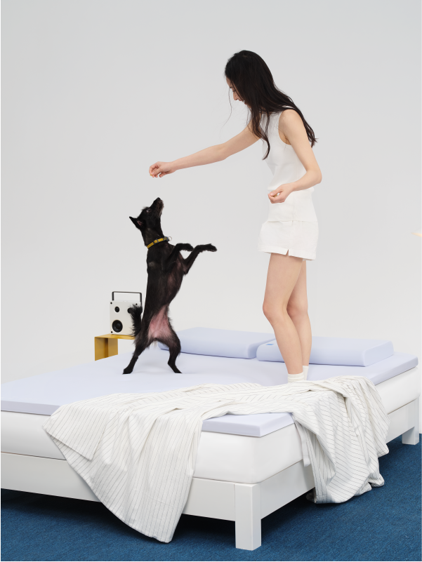 卢召利:我们最开始其实考虑过做海绵床垫,但最后放弃了,主要有两个原因,第一是成本和用户认知问题,海绵成本其实比弹簧高,在国外很多国家海绵是很安全的材质,但如果把床垫里的弹簧换成硬海绵,国内不少用户会觉得海绵是化工产品,接受度不高;第二是用户体验感,纯海绵材质产品会特别轻,没有重量感。我们最初开发过海绵床垫,最后还是定了弹簧床垫的方向,弹簧在底部支撑层,最顶层是记忆棉。
