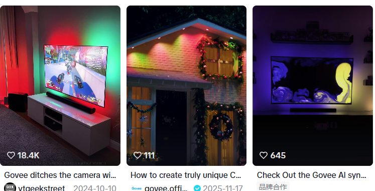 Govee的爆发式增长,离不开对社交媒体营销的深刻理解,其核心逻辑是“内容即广告”。