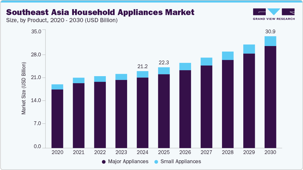 东南亚家用小电器的市场规模在2025年估值为223亿美元,预计将在2030年达到309亿美元,期间几年的复合年增长率为6.7%,发展势头十分强劲。