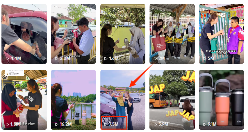 其中,马来西亚账号@tyeso.malaysia就十分擅长此类内容。他们发布的赠送路人系列,在TikTok获得的反响就十分不错,流量最高的一条甚至达到了750万次播放,也算是品牌在当地的爆款内容之一。