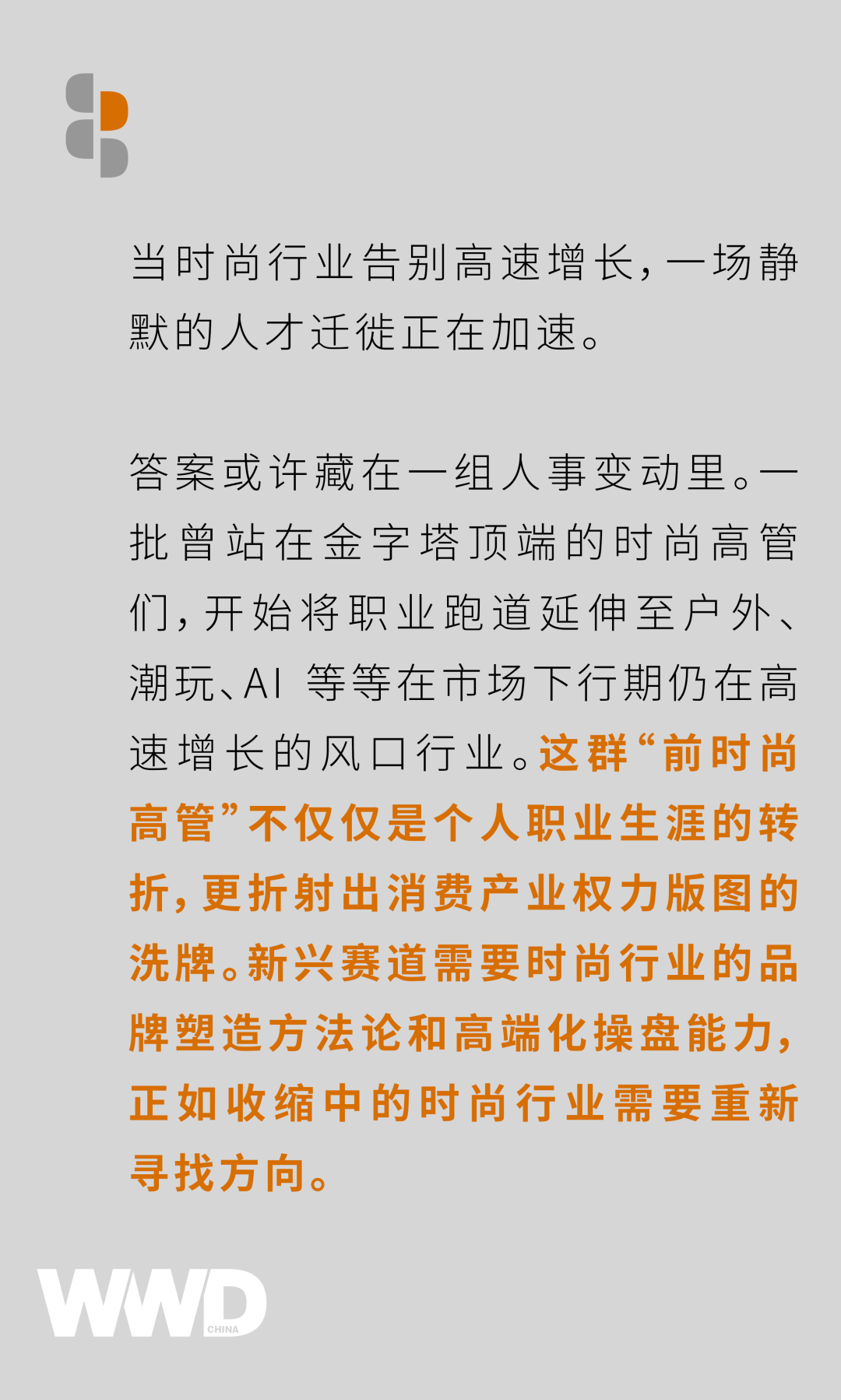 传统时尚产业的边界正在消融,一个跨行业、跨品类的人才生态正在形成。而那些率先完成这种认知迭代的管理者,或许正在为自己铺设通往下一个十年的职业跑道。WWD