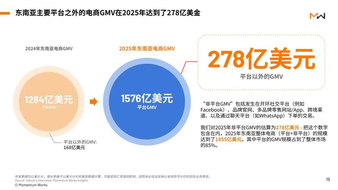 另外一个有趣的点,我们在报告中估算的数字发现,在平台以外的电商 – 包括私域、跨境和其他非平台等 – 的GMV已经达到278亿美元,占到了整体电商市场的15%,比2024年的12.8%有所提升。