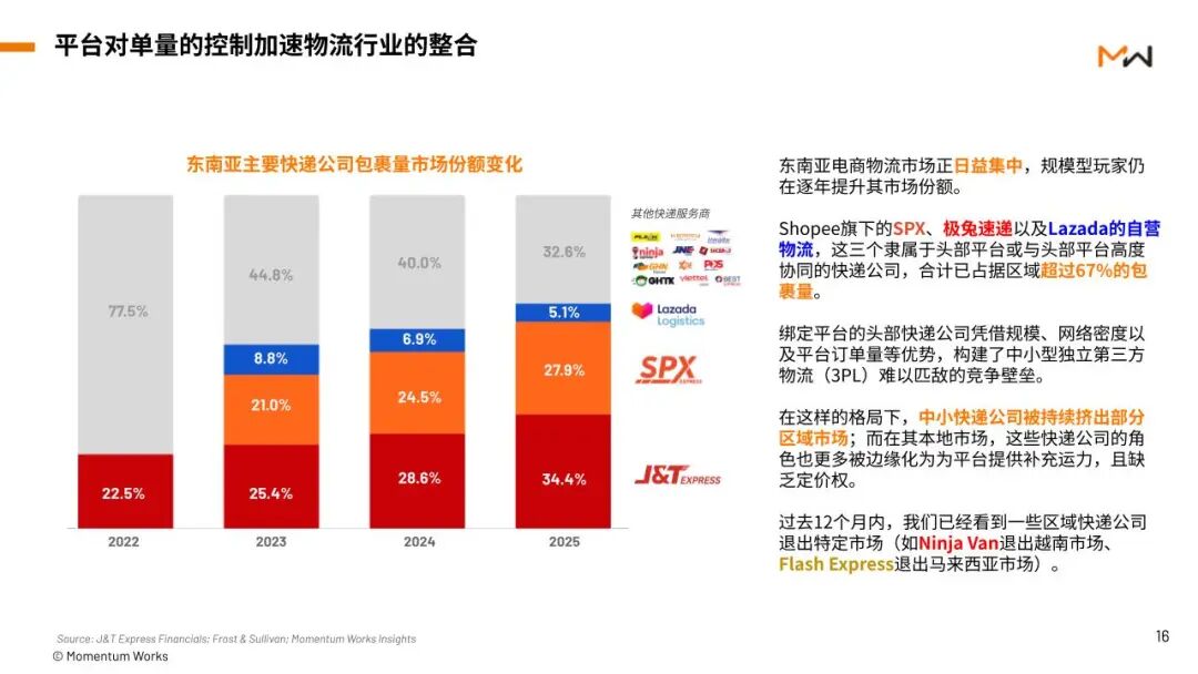 而在2025年全年,极兔加上Shopee和Lazada分别的自营物流体系一共占据了东南亚电商物流67.4%的市场份额,比2024年增加7.4%。