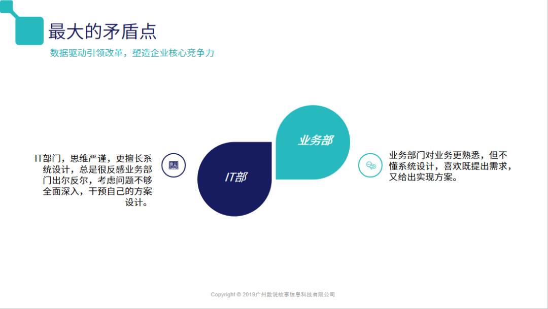 项目实施过程中最大的矛盾点还是IT部和业务部门的分歧: